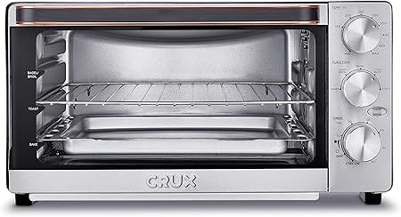 Amazon Com Crux 6 Slice Convection Toaster Oven Hassle Free Baking Broiling Toasting Warming Convenient Adjustable Grill Rack Fits 12 Pizza 60 Minute Timer With Auto Shut Off Feature Slide Out Crumb Tray For